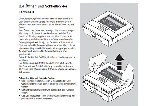 Diese Art der Dokumentation eignet sich besonders, wenn Text in eine Vielzahl von Sprachen übersetzt werden müsste, die zu beschreibenden Schritte aber klar und eindeutig grafisch darzustellen sind.